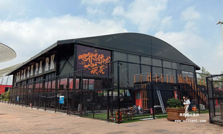 隨著人口的增加和人們生活水平的提高,各種大廈如雨后春筍般拔地而起,人們戶外活動的空間不斷被壓縮,各種戶外體育館更是由于維護(hù)成本以及運(yùn)營成本高昂而不得不提高收費(fèi)標(biāo)準(zhǔn),導(dǎo)致流失不少中低端客戶。此外,傳統(tǒng)體育館更有施工周期長,維護(hù)成本高,用途單一的特點(diǎn)而不受商家歡迎。奧騰集成篷房針對這些傳統(tǒng)體育場館的劣勢,提出了一種全新的體育館篷房設(shè)計方案。這種體育館篷房既可反復(fù)拆卸使用,又可以作為籃球館、足球場、羽毛球場等,可謂是“一個篷房,多個場館”!
