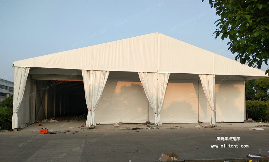 奧騰大型篷房可滿足于各種不同的活動需要。超大凈跨度:10-60米,模塊化結構,搭建工期短,易于組裝和拆卸。大型篷房外形優雅、搭建靈活、安全環保、防雨、防曬、防霉、阻燃,可抗8-10級大風,廣泛應用于各類戶外臨時性活動,作為臨時或長期建筑都是很好的選擇。