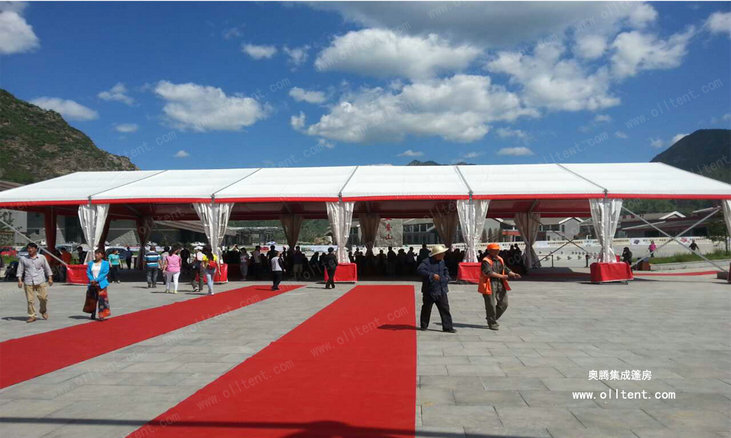 奧騰大型篷房可滿足于各種不同的活動需要。超大凈跨度:10-60米,模塊化結構,搭建工期短,易于組裝和拆卸。大型篷房外形優雅、搭建靈活、安全環保、防雨、防曬、防霉、阻燃,可抗8-10級大風,廣泛應用于各類戶外臨時性活動,作為臨時或長期建筑都是很好的選擇。